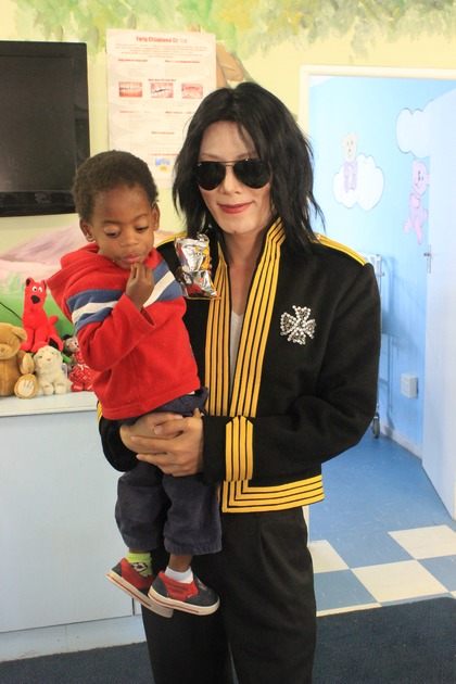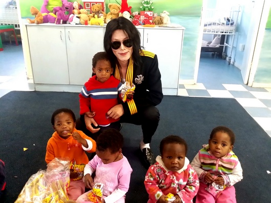 近日,世界流行之王迈克尔杰克逊(Michael Jackson)的全球著名模仿者王杰杰克逊(Wang Jackson)携手中国曲艺家协会一同探访了南非卡雅利沙孤儿院(BAPHUMELELE)的艾滋病儿童们,为他们带去了食品和礼物,并与孩子们作零距离接触,以此呼吁社会大众共同加入到这个行列中来。