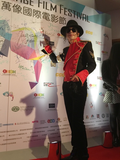 中国最受关注的迈克尔·杰克逊(MJ)模仿艺人王杰克逊,日前获邀出席第六届欧洲万象国际华语电影节闭幕式暨颁奖典礼,与徐帆、黄宗泽、陈思诚和佟丽娅伉俪、彭丹等为华语电影打气,其惟妙惟肖的MJ扮相更令不少民众激动不已。