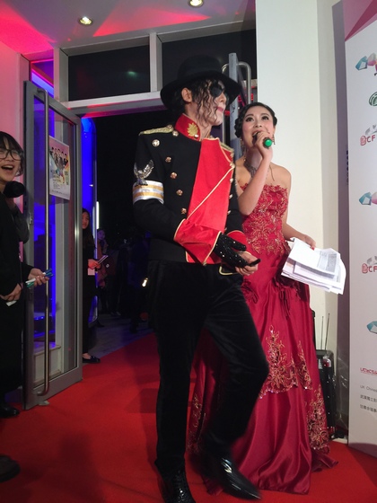 整场颁奖典礼星光璀璨,徐帆、黄宗泽、陈思诚和佟丽娅伉俪、彭丹等都是座上客,其中尤以王杰克逊最为特别。从他以一身标志性的MJ装扮走上红地毯的那刻起,形神兼具的造型便令当地的围观民众惊叹不已,尖叫声四起,有些还流下了感慨的泪水,实在是王杰克逊与MJ太惟妙惟肖了。