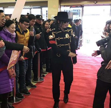 当王杰克逊身着一款私人定制靓丽绝版的长款羽绒服,配上个人独有与迈克尔杰克逊十分相似的形象造型,亮相新闻发布会现场的一刹那,引起全场人员震撼。