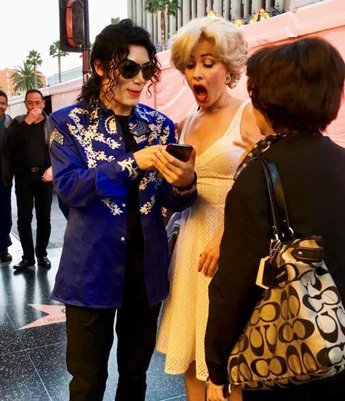 好莱坞的星光大道正如其名,明星向来络绎不绝,可谓是星光璀璨,自然练就了粉丝的独具慧眼,很多粉丝都能大声直呼王杰克逊的名字,与王杰克逊都能淡定合影的性感女神“玛丽莲·梦露”模仿艺人,直言确有被吓到,简直不敢想象。