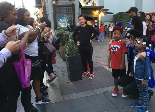 王杰克逊在游星光大道的过程中,几次被路过的粉丝围堵,粉丝热切要求与王杰克逊拍照留念,可见王杰克逊在美国的非凡影响力。